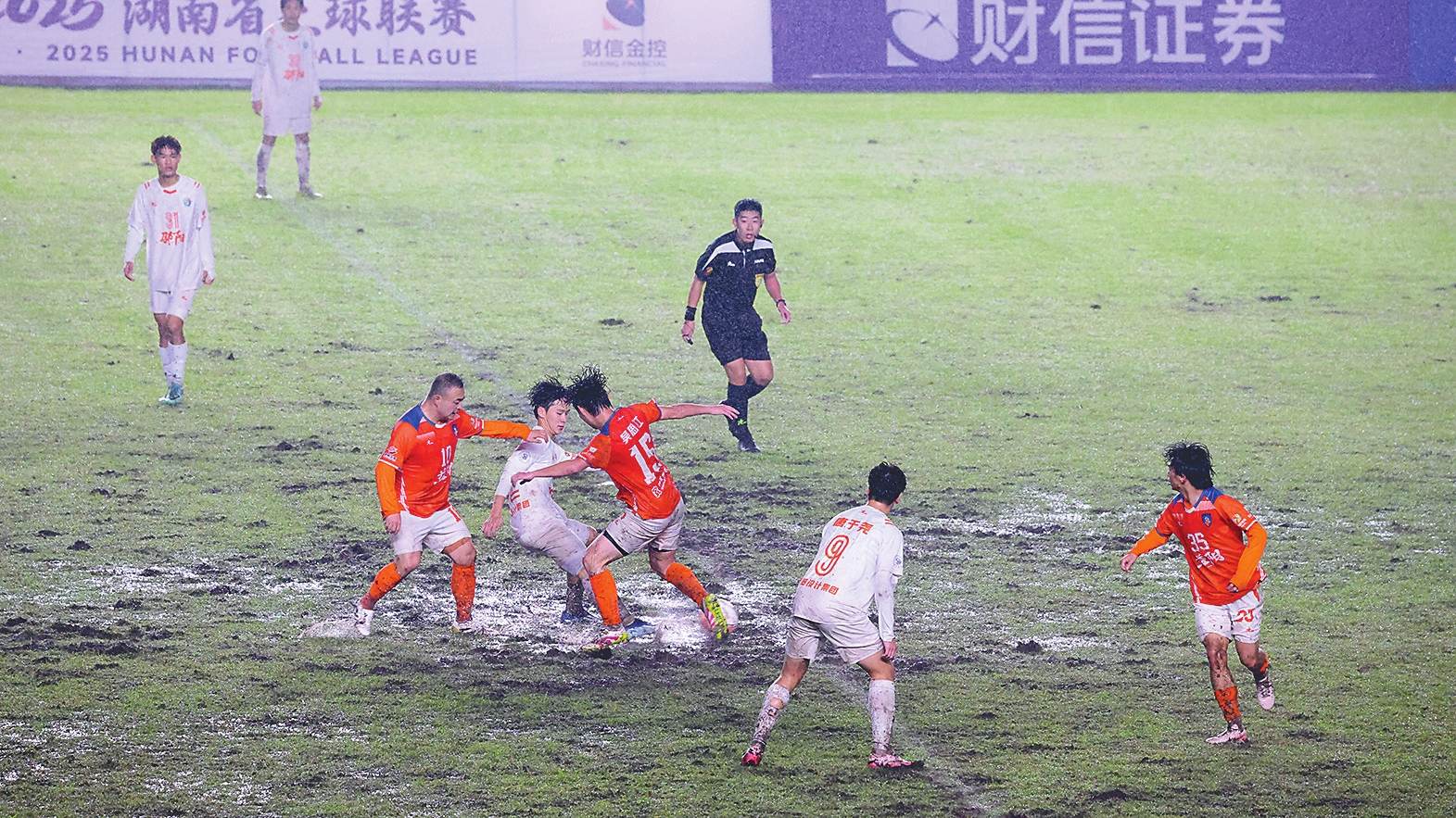 11月8日晚,大雨不停,益阳奥林匹克公园体育场笼罩在雨幕之中,“湘超”联赛第9轮益阳队迎战邵阳队,湿滑的场地无疑对双方球员的技战术发挥与意志力是不小考验。经过紧张激烈的鏖战,益阳队2:0击败对手,延续主场良好势头,斩获关键3分。9轮战罢积14分,排名稳中有进。