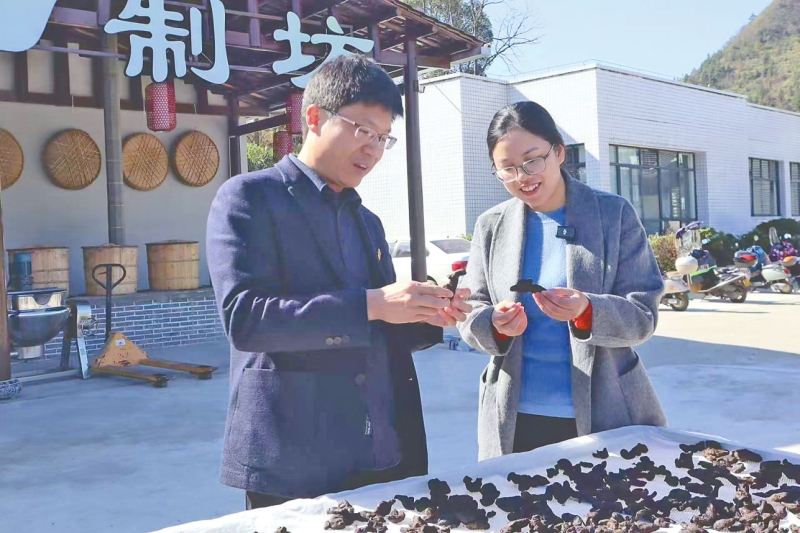 文武(左)实地考察黄精加工企业生产情况。刘馨予摄