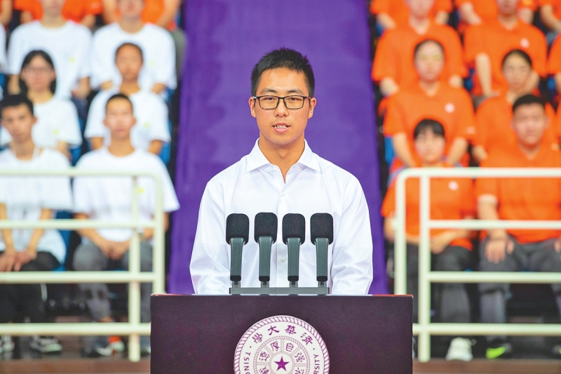 安化学子谌晨鑫在清华大学2024级本科新生开学典礼上作为新生代表发言。李派摄