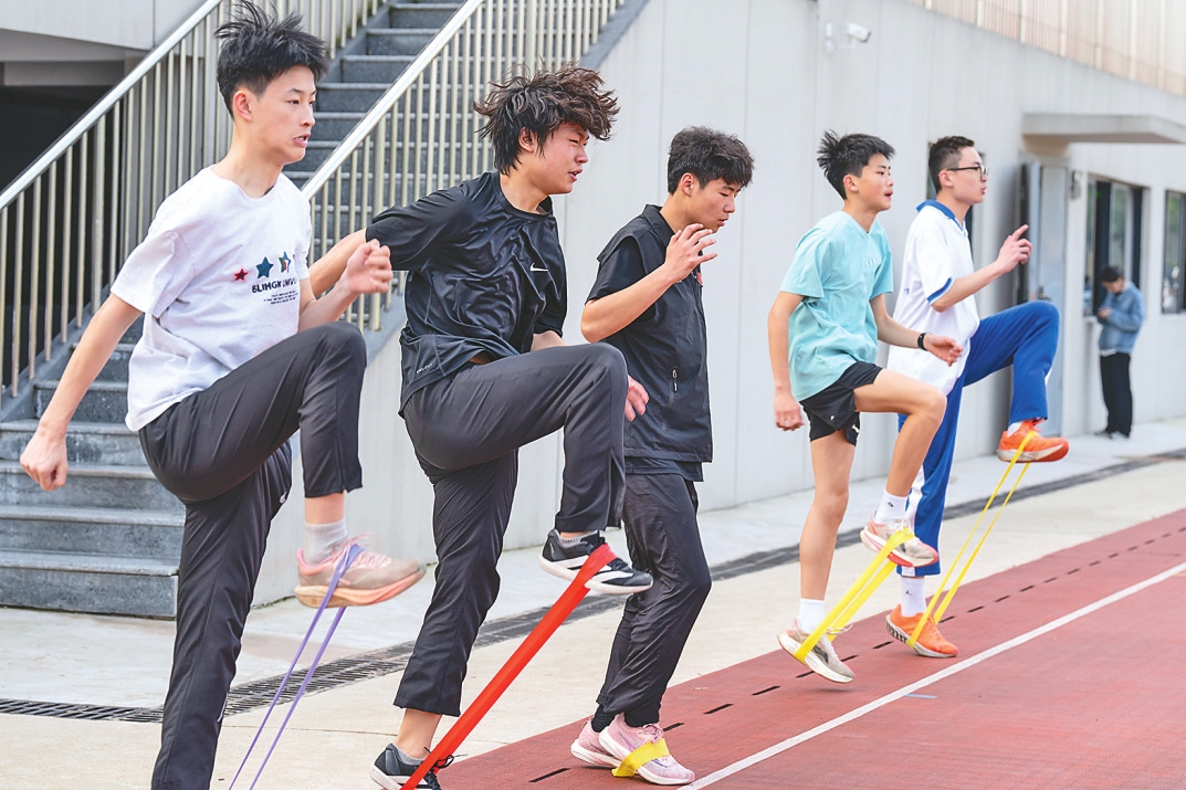在益阳医学高等专科学校的田径场上,跨栏运动员如离弦之箭,奋力冲向终点;中长跑运动员匀速前进,反复打磨步伐细节,锤炼实战技巧。