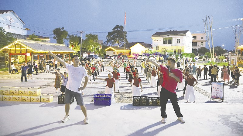 赫山区文艺轻骑队开展广场舞教学和直播带货活动。