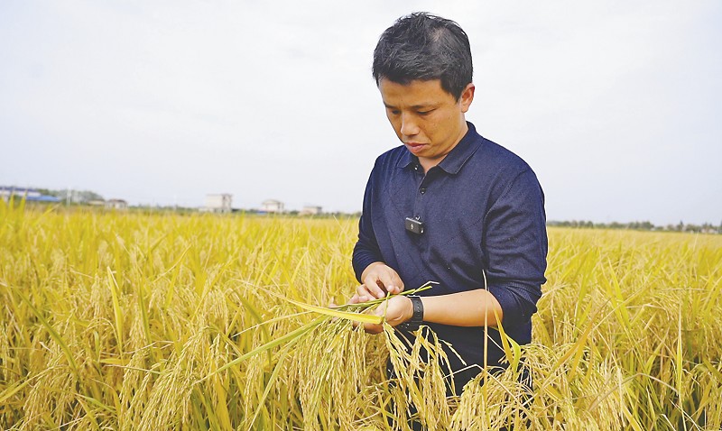 试验田内,胡文彬正在查看变异植株。黄云摄