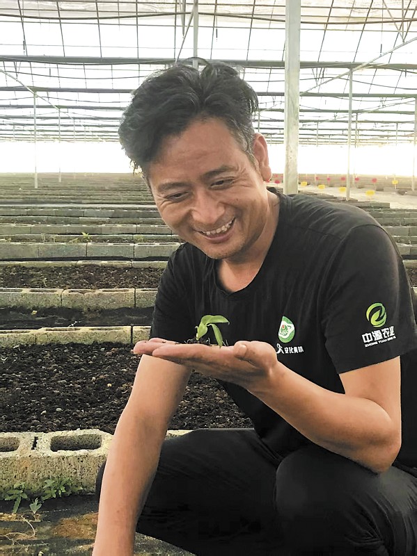 蒋丰登在育苗基地观察黄精幼苗生长情况。夏训武摄