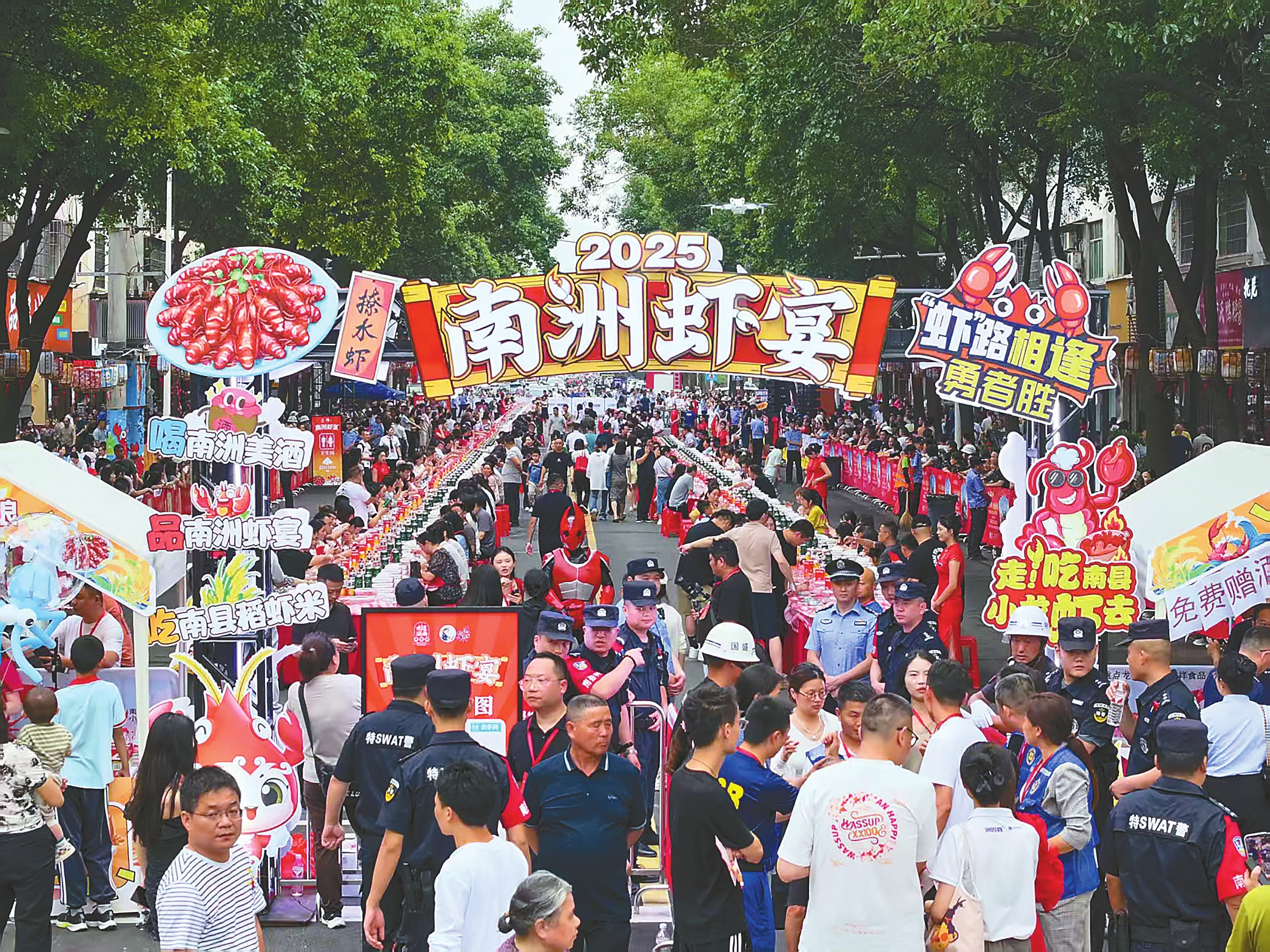 2025年第三届南县小龙虾节创新打造168米长街虾宴。