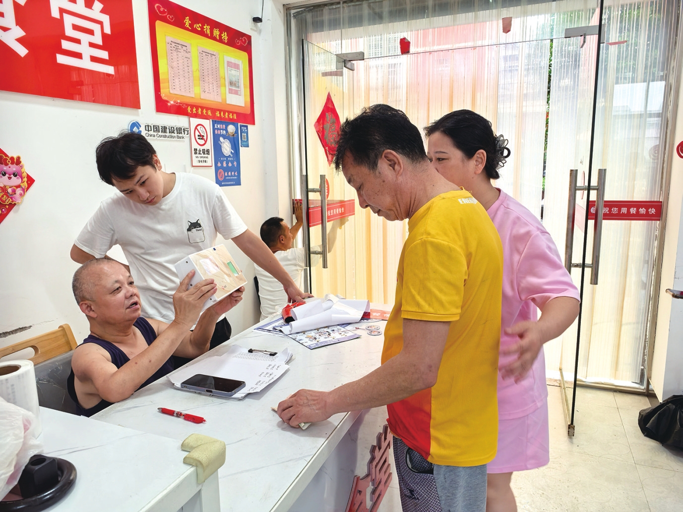 曾建辉用电子设备为用餐居民打卡。陈浩军摄