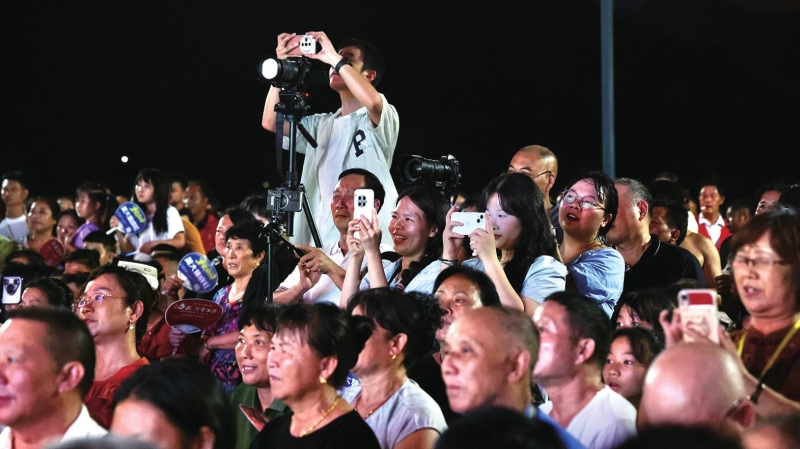 夜色渐深,葫芦丝合奏《荷塘月色》悠扬响起,与远处的荷塘相映成趣。80岁的村民肖齐化看得入了迷,他说:“没想到农村也能有这么高水准的演出。”