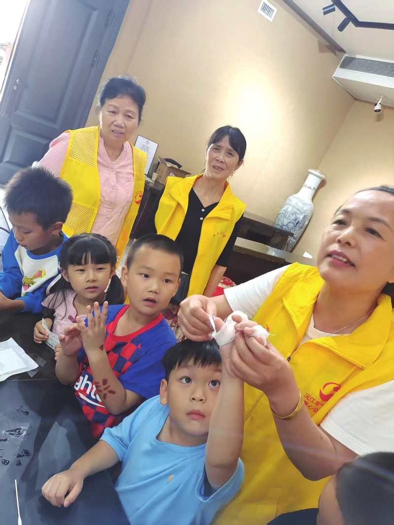 “真正的帮扶,是走进孩子内心,看见他们孤独背后的渴望,用温柔把丢失的光亮一点点点燃。”正是这样的原因,当“一米阳光”与沅江市洞庭湖博物馆联手打造“国潮之家公益课堂”时,李军辉成了参与活动最多的志愿者之一。她发挥自己的专长,给孩子们讲家庭急救知识、带领孩子们做手工等。