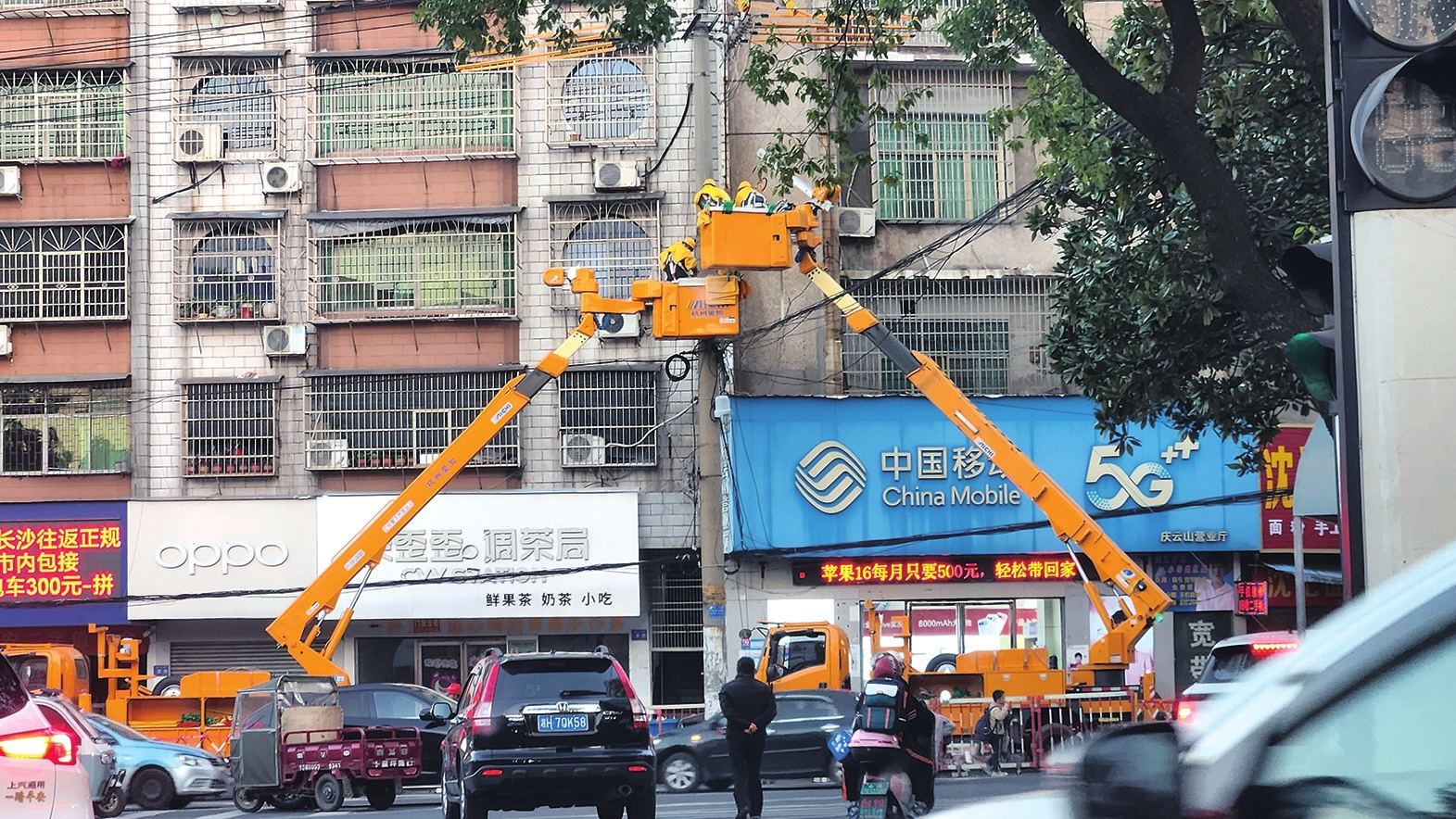 该线路涉及用户4000户左右,为最大限度减少对居民正常用电的影响,供电公司出动两辆带电车配合作业。工作人员依次将新断路器、隔离开关、避雷器等金具吊装至电杆并安装紧固。经过近4小时紧张施工,作业圆满完成。
