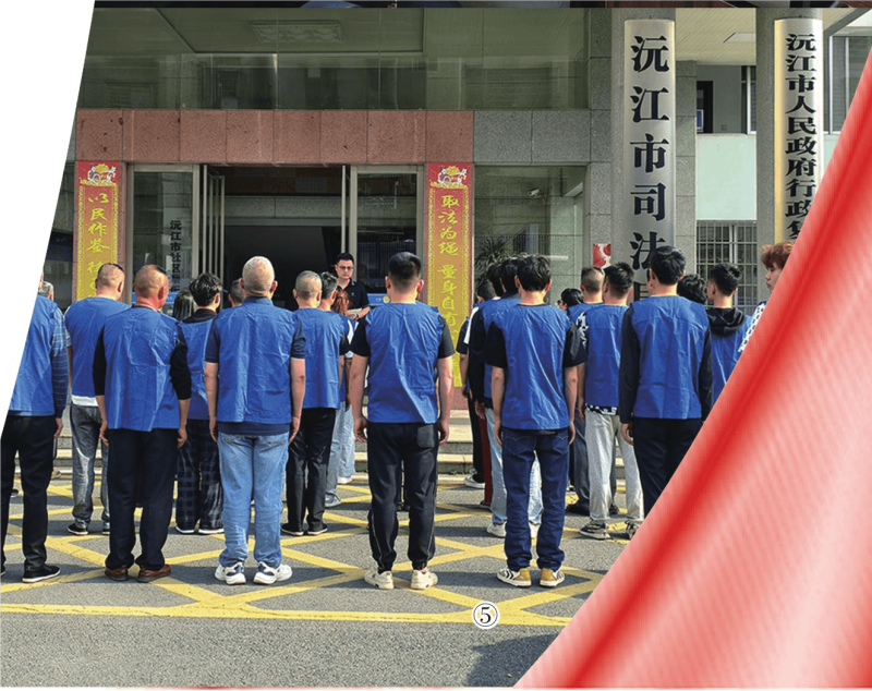 ⑤沅江市司法干警组织社区矫正对象进行点训。