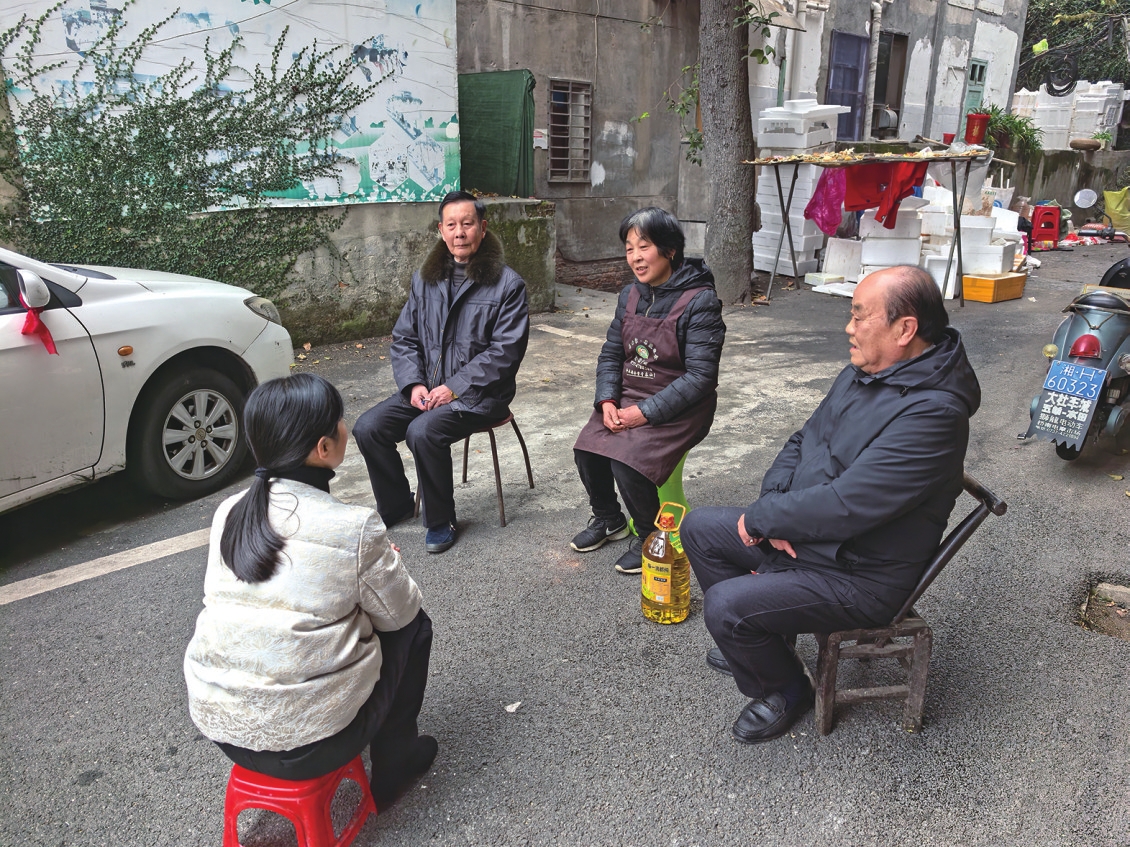桃花仑街道、社区工作人员看望慰问周端香。陈浩军摄