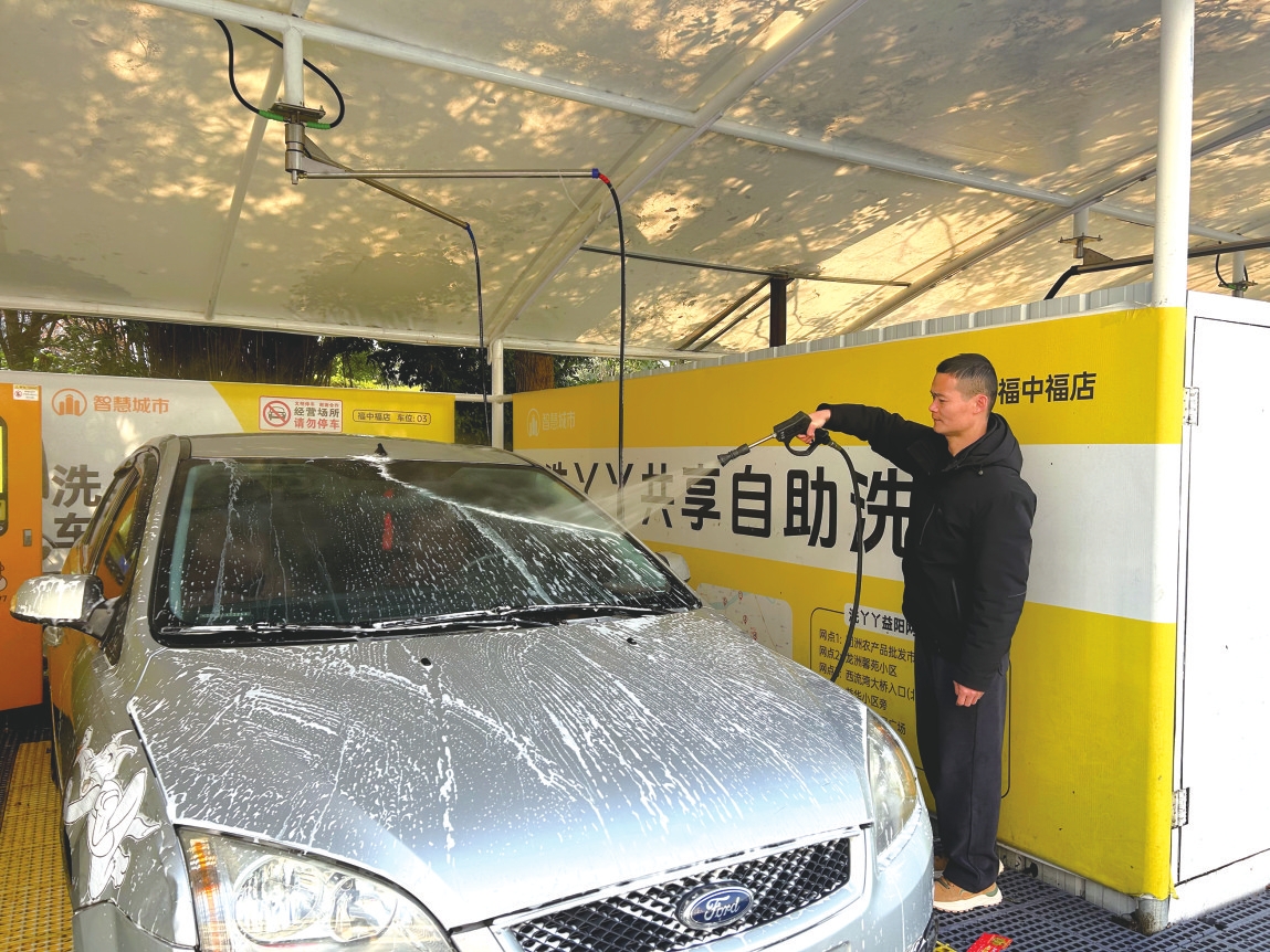1月6日,记者在福中福商业中心的自助洗车棚看到,有市民拿着水枪在清洗爱车。智能自助洗车机安装有高压水枪、泡沫枪、吸尘设备,根据清水、泡沫使用量、吸尘时间等计费,均价在十元左右。不少市民表示,自助洗车无需排队等候,价格比在洗车店更加实惠,是一个不错的选择。