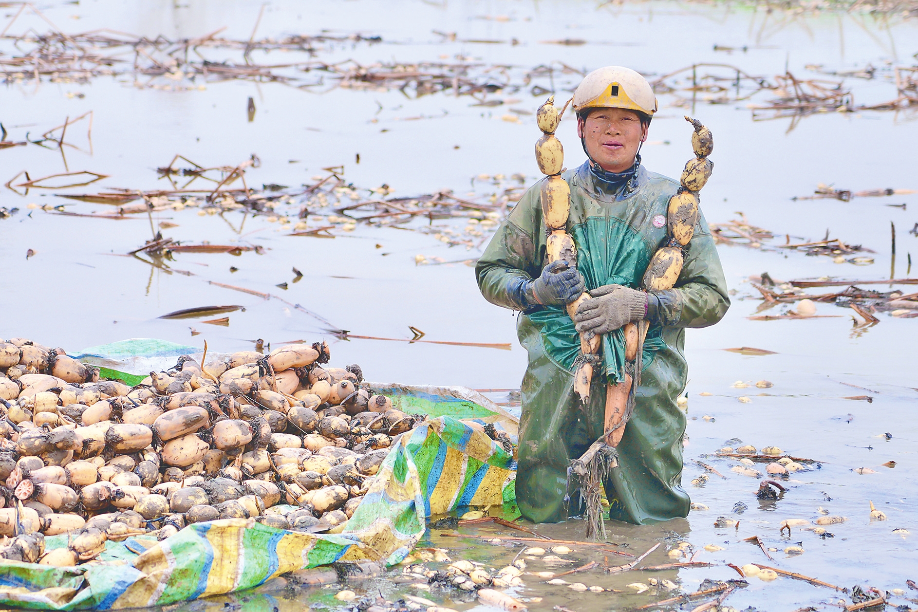 天色渐暗,挖藕人扛着满筐的藕上岸,泥水顺着胶靴滴答落下。塘边,新一批藕箱已封装完毕,即将发往远方,这片冬天的泥泞之下,藏着一个春天。