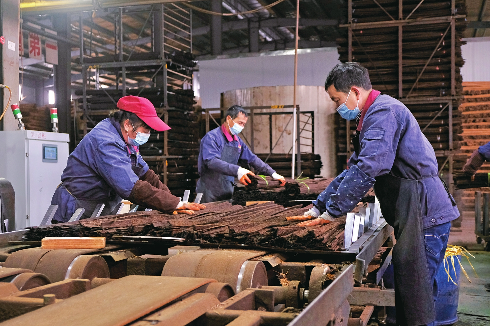 2月6日,湖南桃花江竹材科技股份有限公司车间内机器轻鸣,淡淡的竹香萦绕其间。来自周边村镇的工人们正专注操作,将一根根本土翠竹加工成平整的环保板材。通过“公司+基地+合作社+农户”的联结模式,许多曾外出打工的村民如今实现在“家门口”稳定就业,每月可获得5000元到6000元的可观收入。陈徐文倩摄