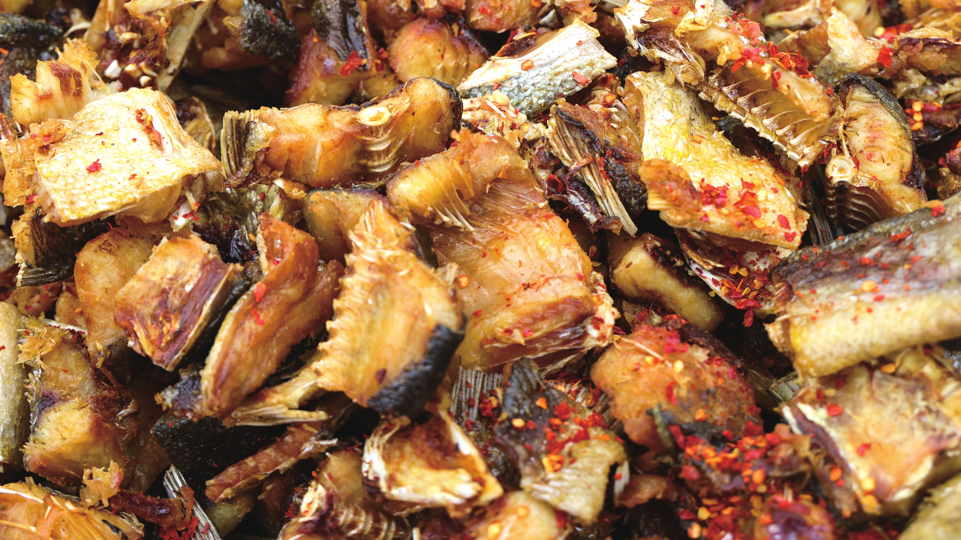 大通湖区沙堡洲渔村炸鱼排。 钟浩摄