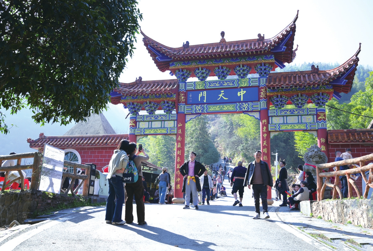 郁郁春华,草长莺飞。连日来,天气晴好,不少市民登高踏青、游玩赏花,在自然山水中感受春日之美。图为市民在桃江县浮邱山风景区拍照留念。