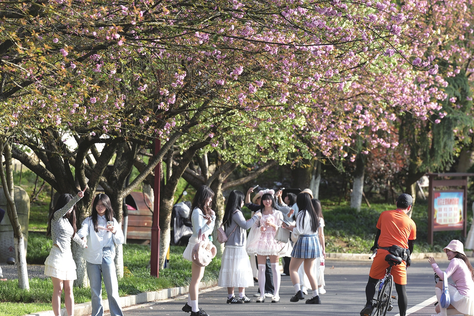 清明假期首日,久雨初晴。益阳中心城区秀峰公园的晚樱进入最佳观赏期,粉白相间的花朵层层叠叠,吸引众多市民游客前来打卡。年轻人换上精致春装,以花海为背景定格春日美好瞬间,赴一场与晚樱的浪漫之约。