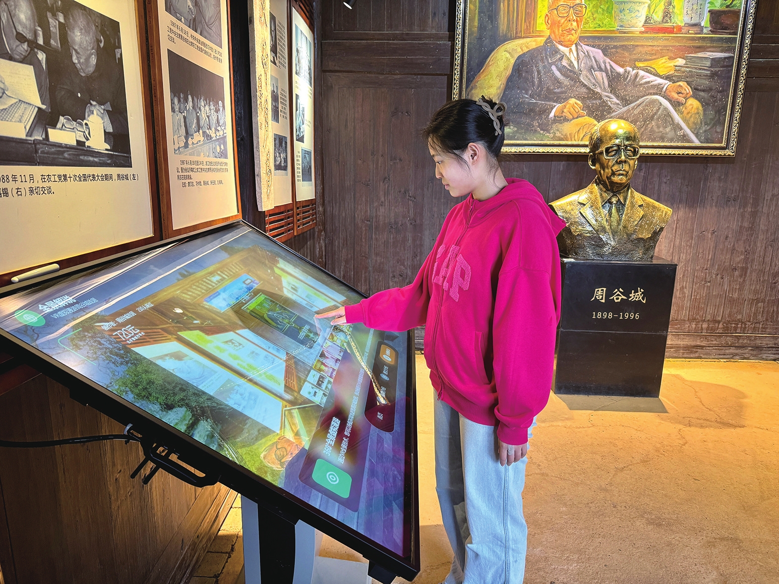 周谷城故居始建于清末民初,建筑面积247平方米,2015年底完成修缮并免费对外开放。今年,故居完成科技化改造升级,智慧化服务全面落地。展厅设置全景显示屏,可一键总览故居全貌;360度全景虚拟漫游系统上线,配备智能化全景讲解,为参观者带来沉浸式体验;各房间均配有专属二维码讲解牌,扫码即可获取详细介绍;故居前坪增设拍照打卡框,满足游客拍照留念需求。同时,屋内安装智能感应灯,有人到访自动亮起,无人时自动熄灭,兼顾参观体验与节能降耗。