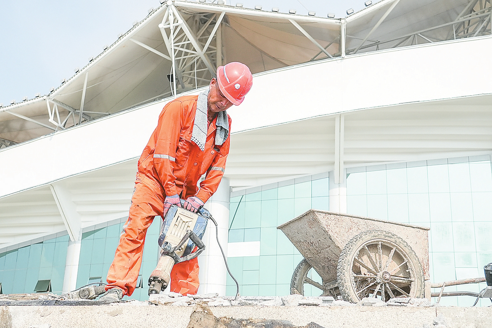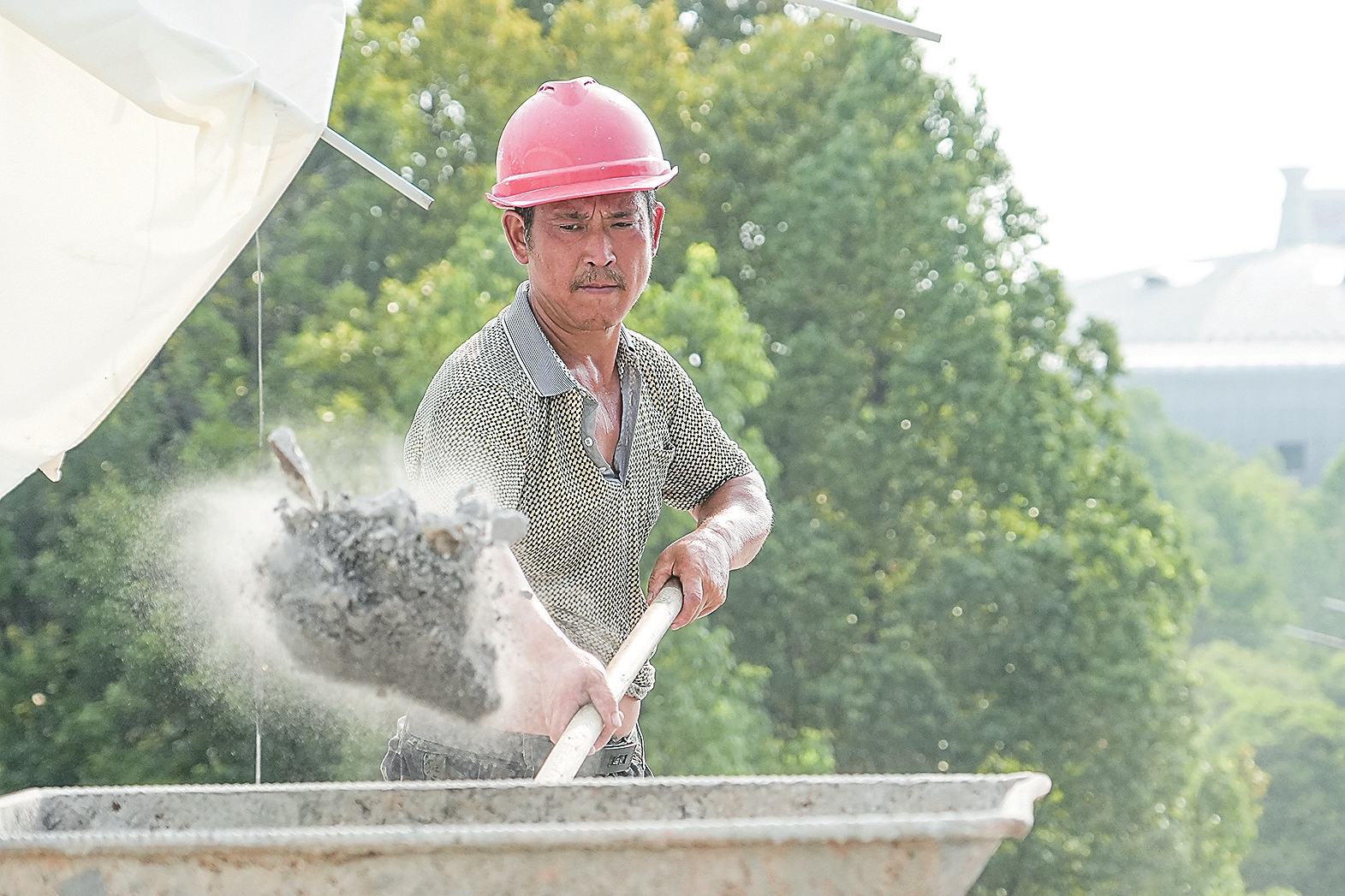7月8日,益阳奥林匹克公园内,建设者们正为迎接第十五届省运会的到来挥汗鏖战。骄阳如火,热浪蒸腾。汗水早已浸透衣衫,烙下深色的印记,却丝毫未能撼动他们的节奏。每一次挥锹、每一次俯身,都是劳动者用汗水书写的无声誓言。