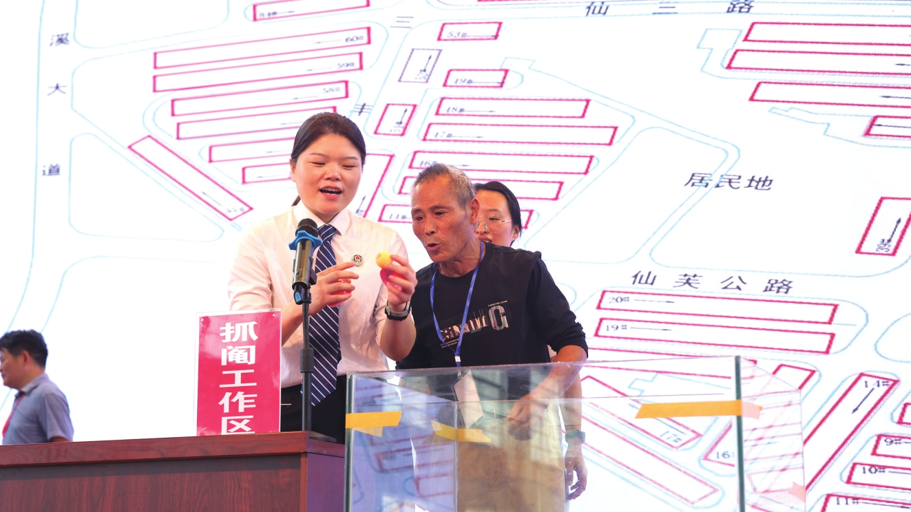 12时40分,大会开始按序号阄确定宅基地位置,工作人员在旁边解说:“根据规划,第一块地在河边,会修建沿河街和沿河步道,其商用价值和投资价值更高。第二块地环境更为安静,适宜喜欢安静的人。”听完工作人员的解释,大家对宅基地的选择心里有了数。16时30分,最后一个宅基地位置被确定。