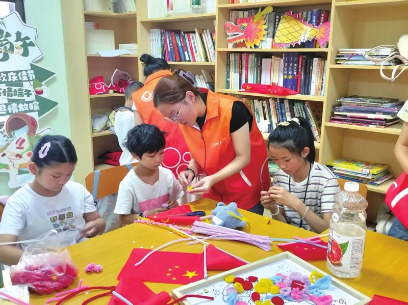 7月热浪滚滚,在赫山区赫山街道梓山社区,彩色剪纸碎片在气流中打着旋儿,落在王希被汗水打湿的额发上。讲台下20多双小手忙碌着,有的把扭扭棒拗成湘江的曲线,有的争辩着“湖南地图像辣椒还是像人脸”。19岁的王希捏着半成品中国地图穿过课桌间隙,听见扎羊角辫的女孩突然欢呼:“老师!我们的‘辣椒省’拼好啦!”