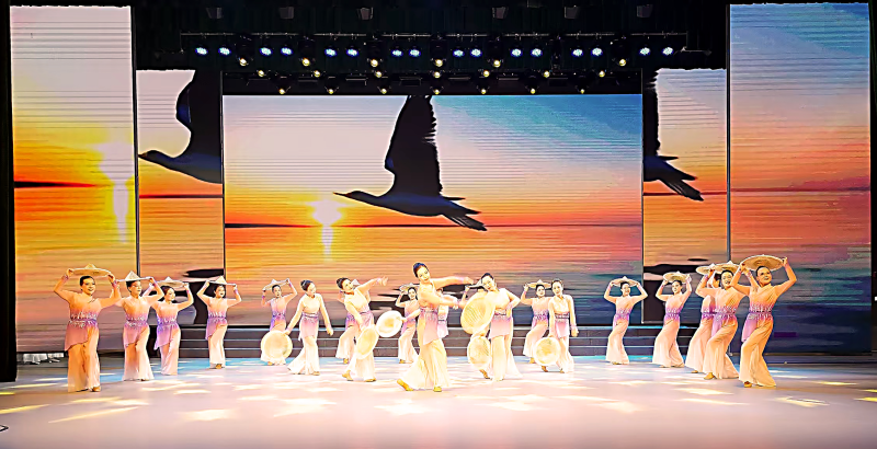 安化县代表队《茶香中国》别出心裁,队员持竹制茶篓起舞,碰撞声与音乐相融,观众纷纷录像:“有益阳特色!”