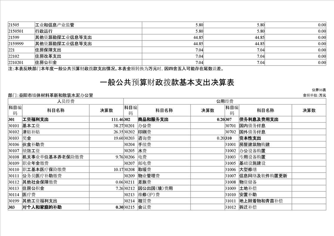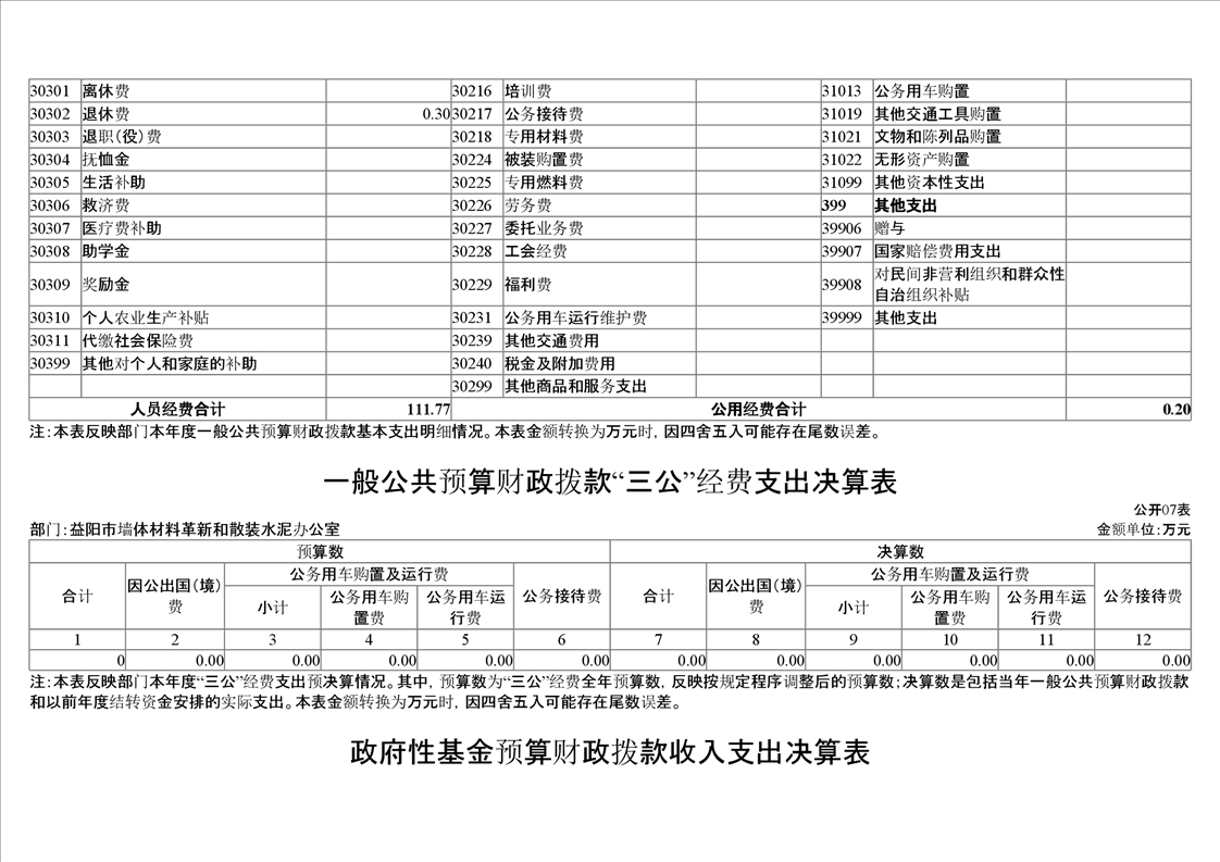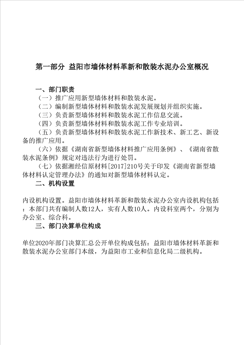 2020年度益阳市墙体材料革新和散装水泥办公室部门决算