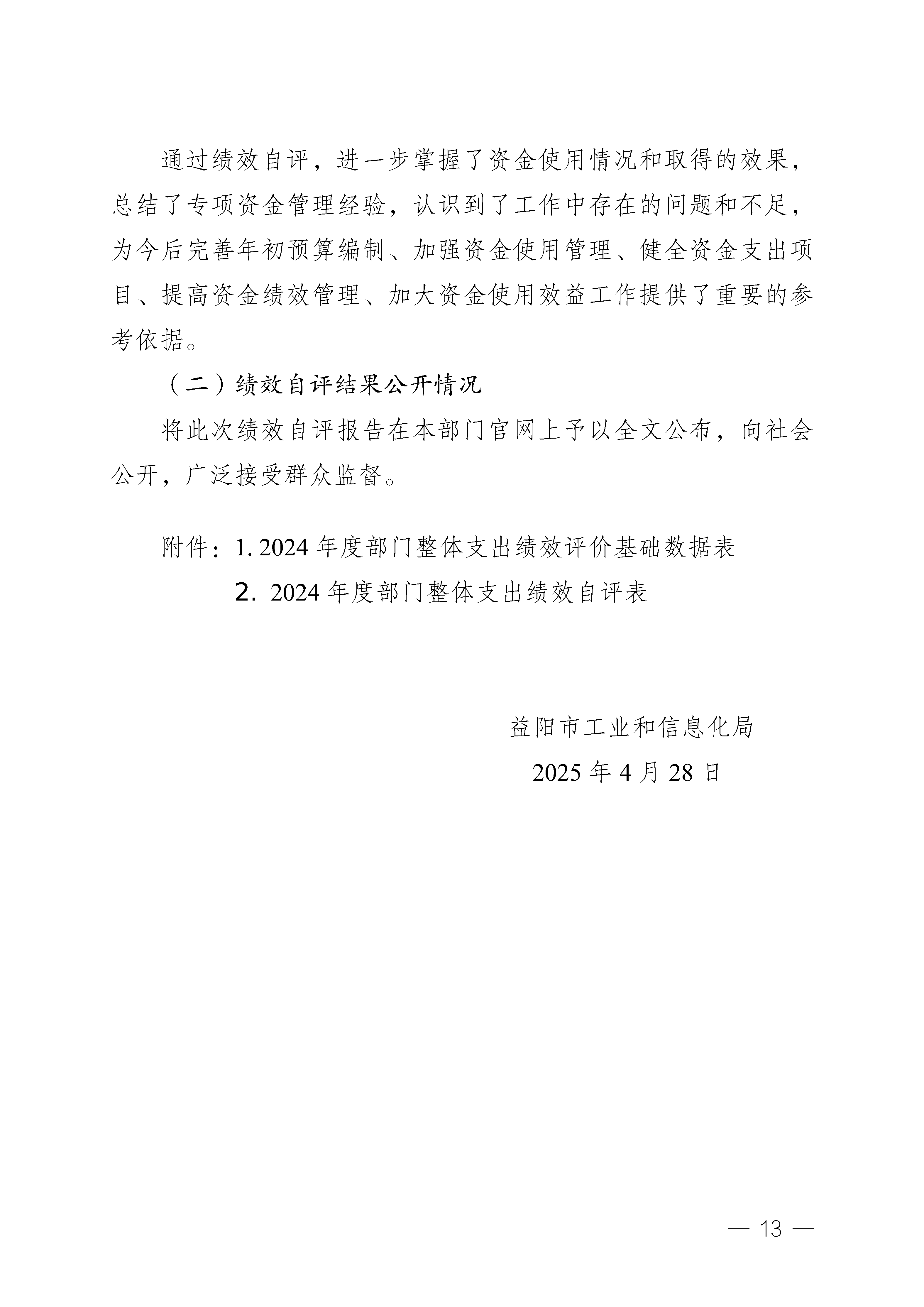 2024年度益阳市工业和信息化局整体支出绩效自评报告