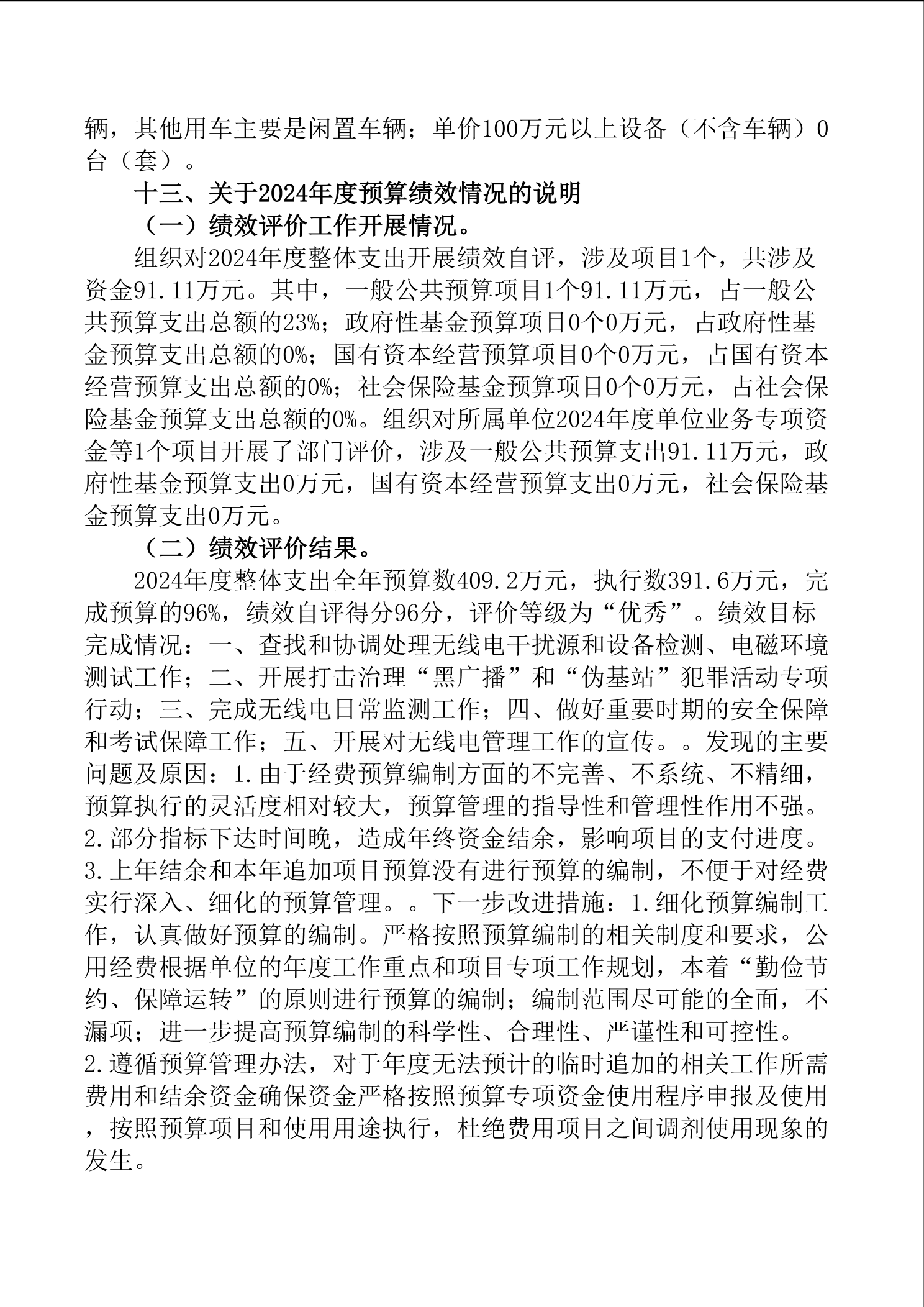 湖南省无线电管理委员会办公室益阳市无线电监测站2024年决算公开说明