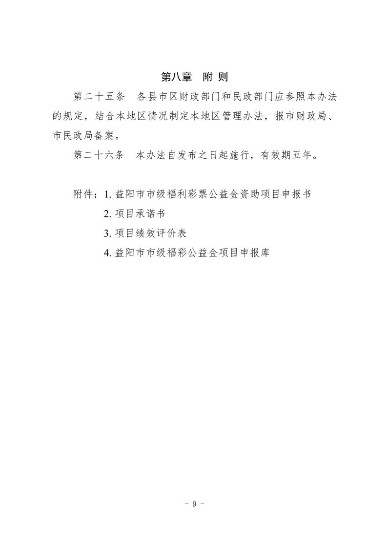 益阳市民政局 益阳市财政局 关于印发《益阳市市级福彩公益金 支持福利事业专项资金管理办法》的通知