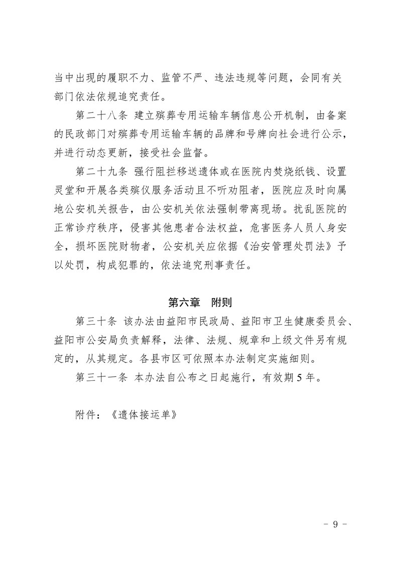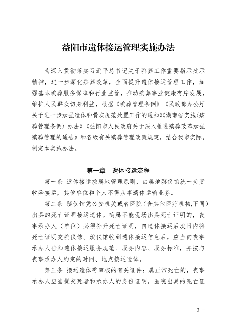 关于印发《益阳市遗体接运管理实施办法》的通知