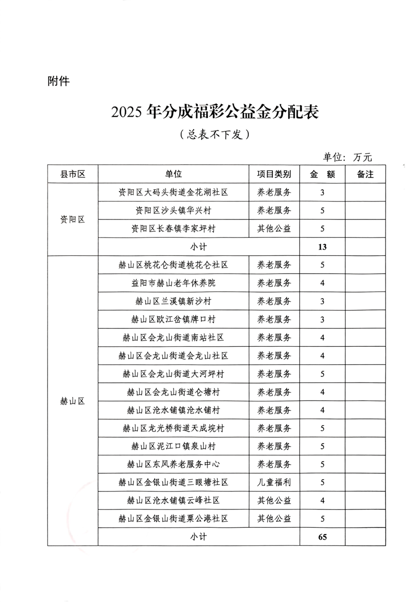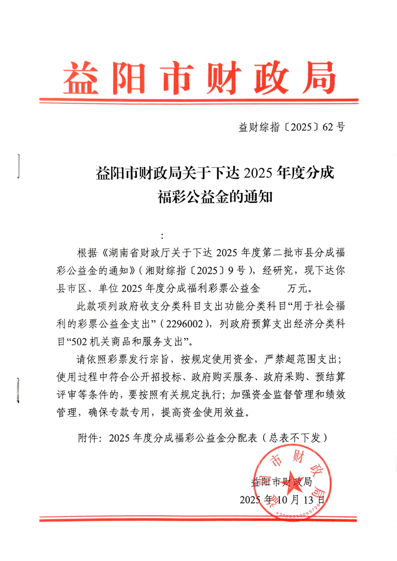 益阳市财政局关于下达2025年度分成福彩公益金的通知2