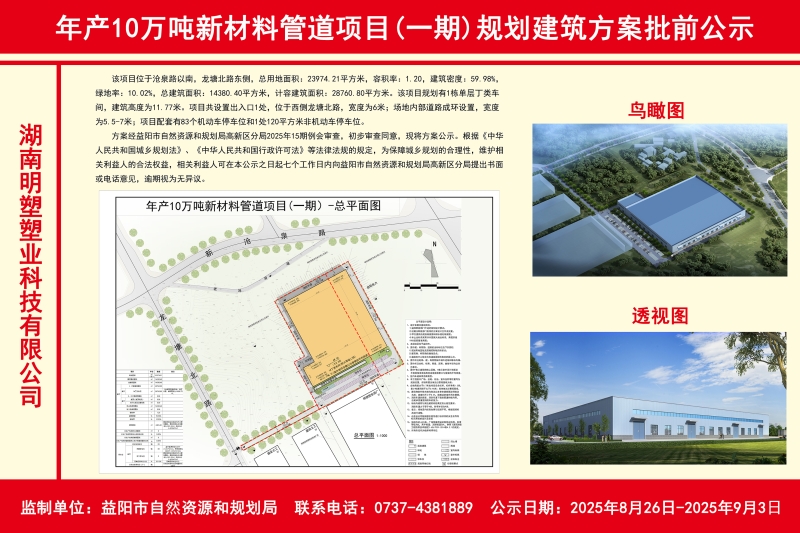 年产10万吨新材料管道项目(一期)规划建筑方案批前公示