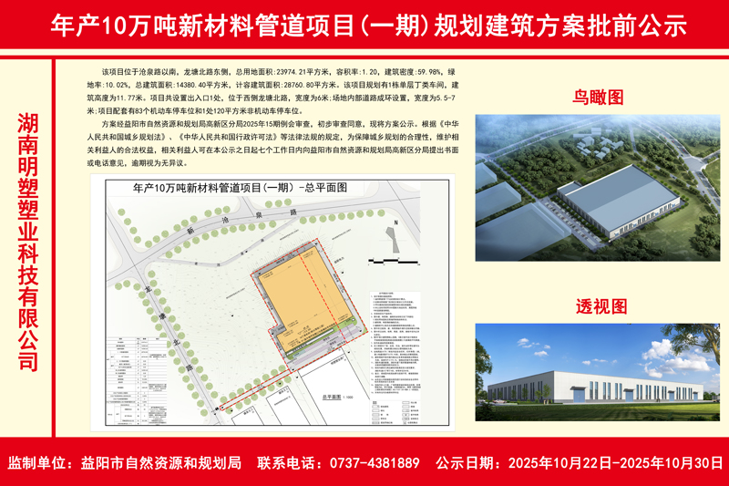 年产10万吨新材料管道项目(一期)规划建筑方案批前公示1