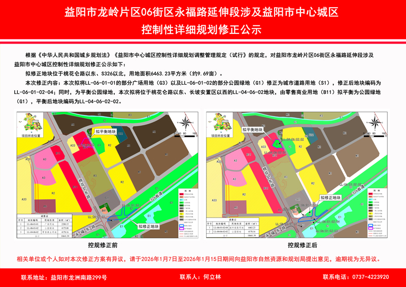益阳市龙岭片区06街区永福路延伸段涉及益阳市中心城区控制性详细规划修正公示