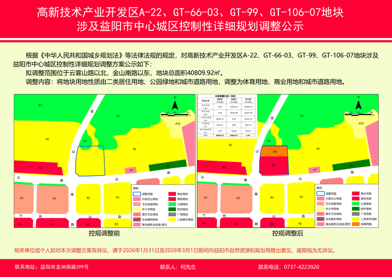高新技术产业开发区A-22、GT-66-03、GT-99、GT-106-07地块涉及益阳市中心城区控制性详细规划调整公示
