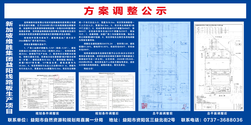 益阳维胜科技有限公司建设项目进行规划条件变更及修建性详细规划方案调整公示