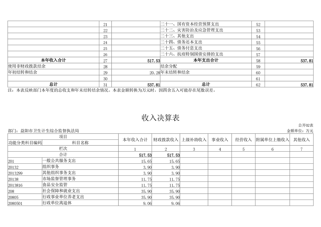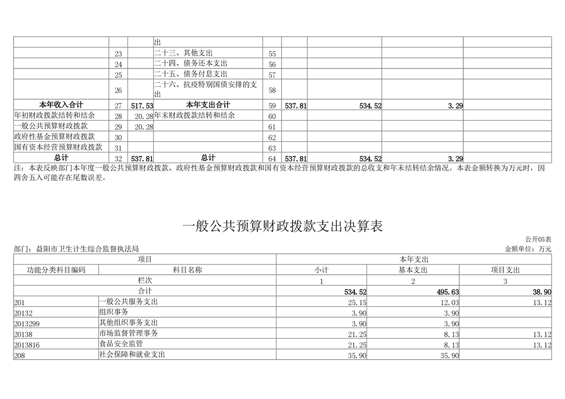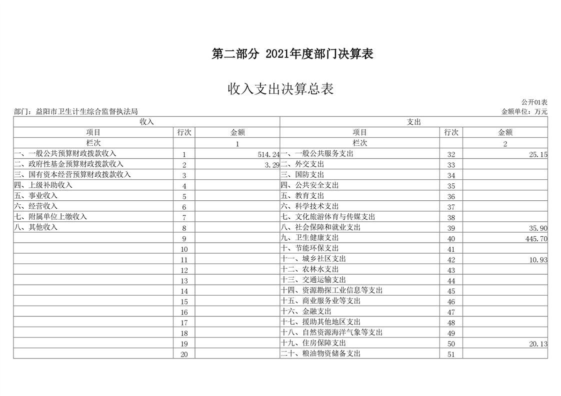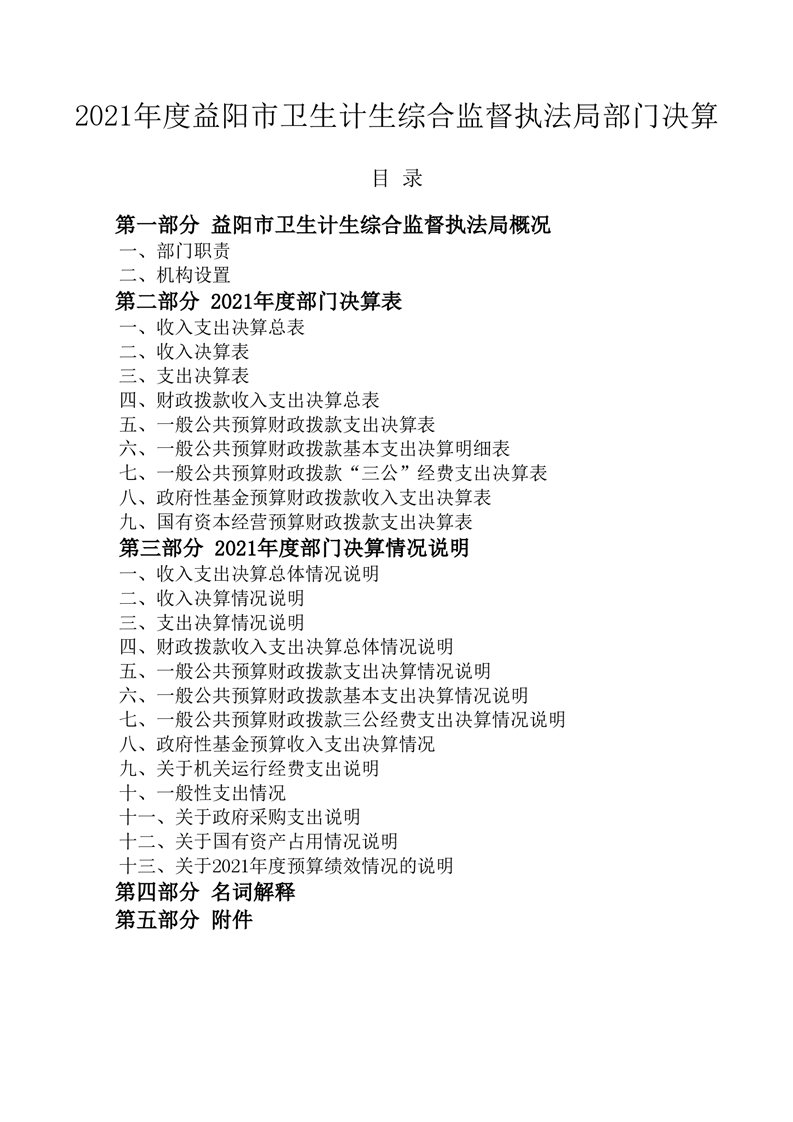 2021年度益阳市卫生计生综合监督执法局部门决算