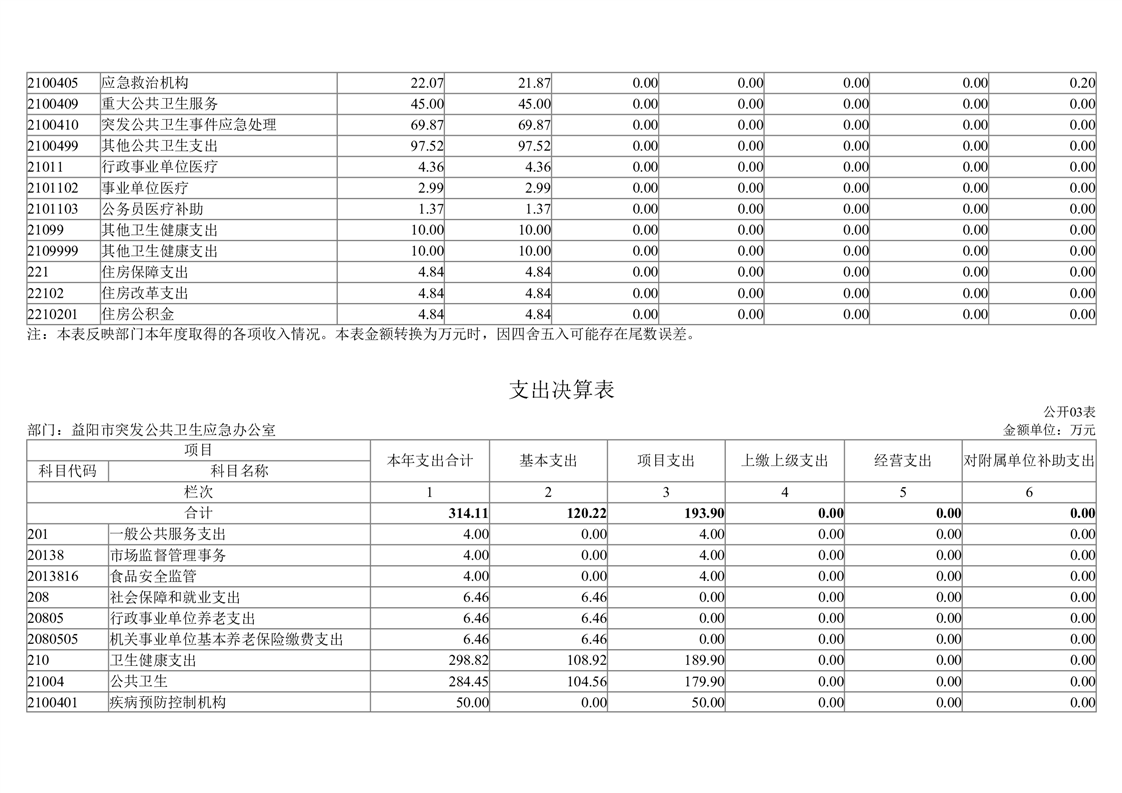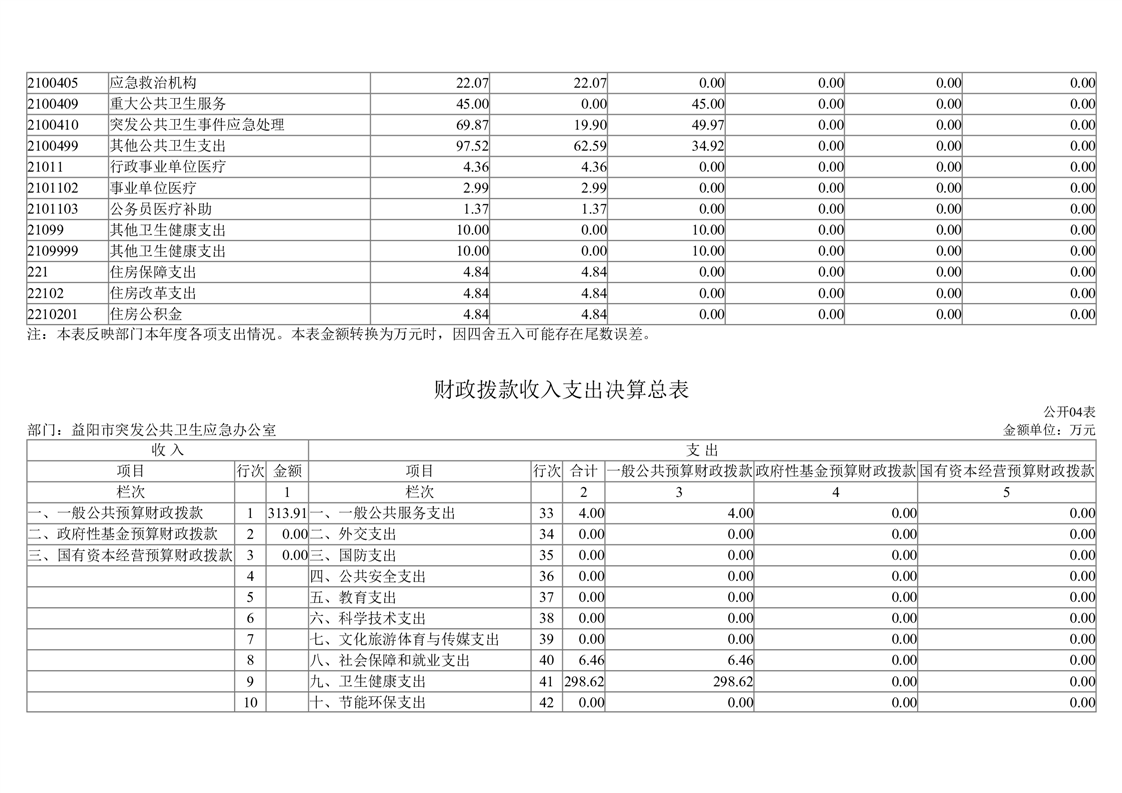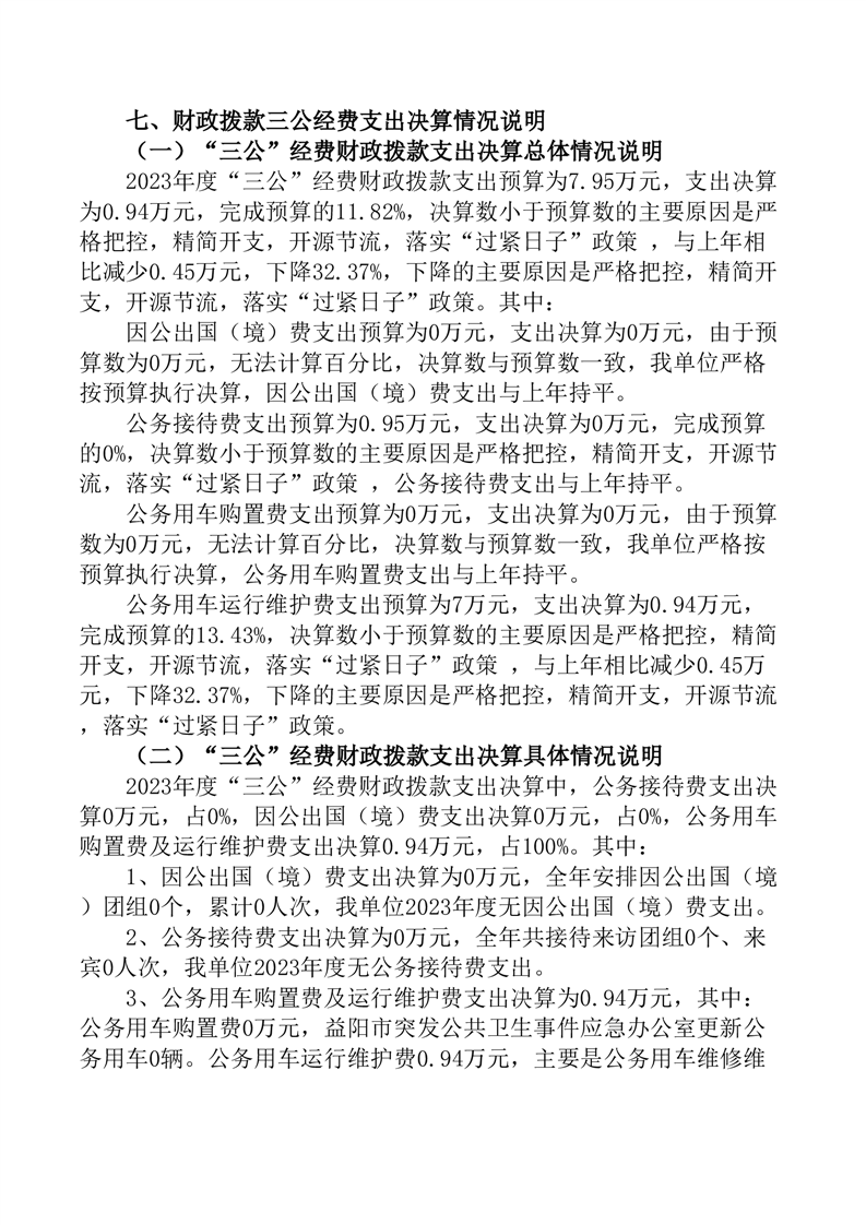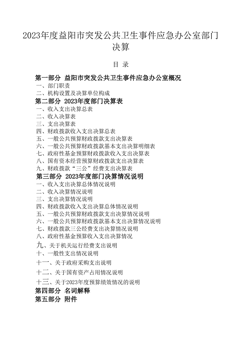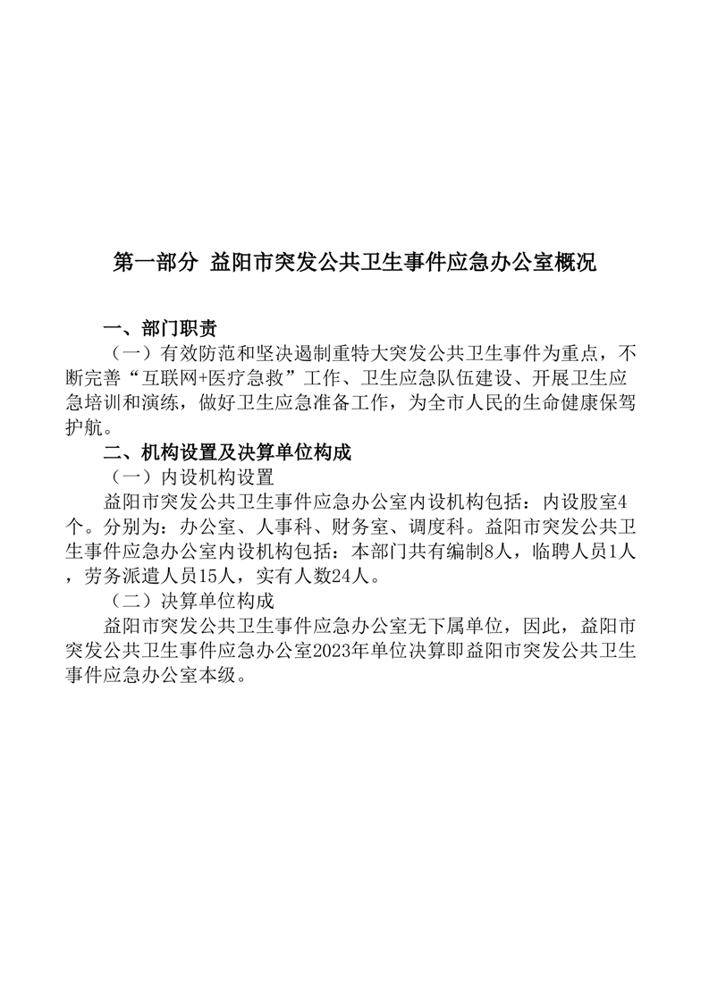 2023年度益阳市突发公共卫生事件应急办公室部门决算