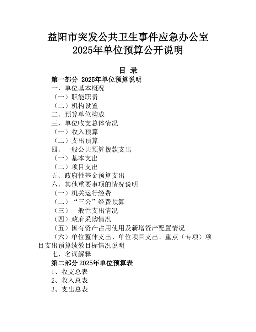 益阳市突发公共卫生应急事件办公室2025年单位预算公开说明