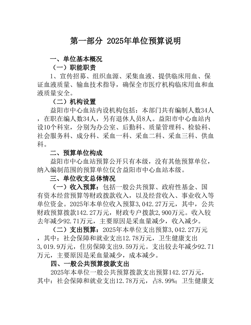 益阳市中心血站2025年单位预算公开说明