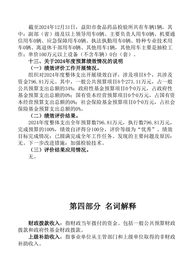 2024年绩效自评报告(益阳市食品药品检验所).doc