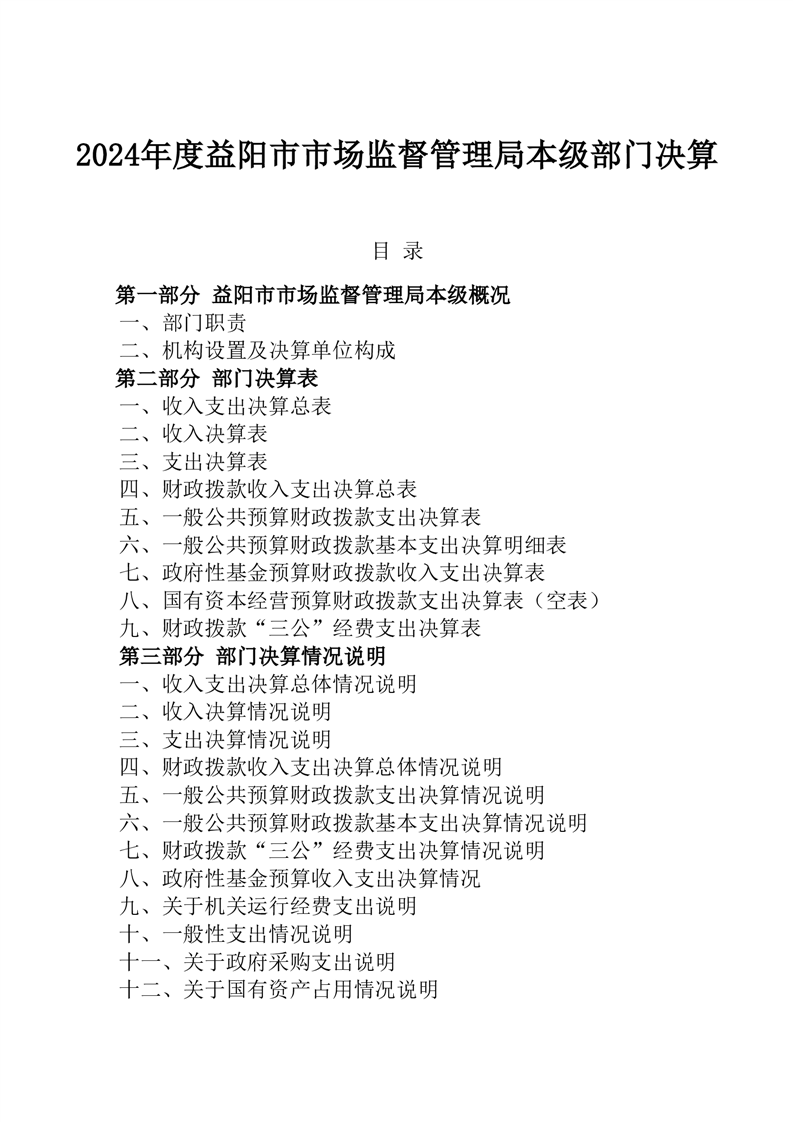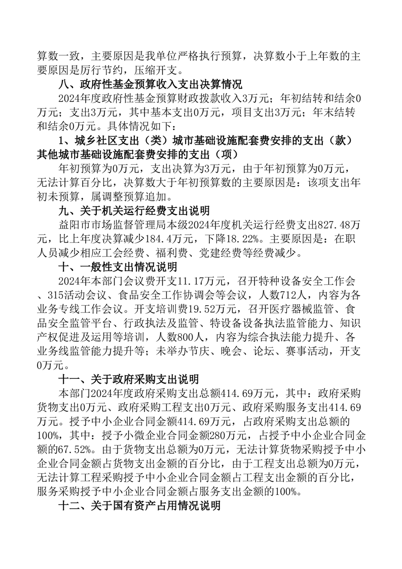 益阳市市场监督管理局本级2024年部门决算公开说明