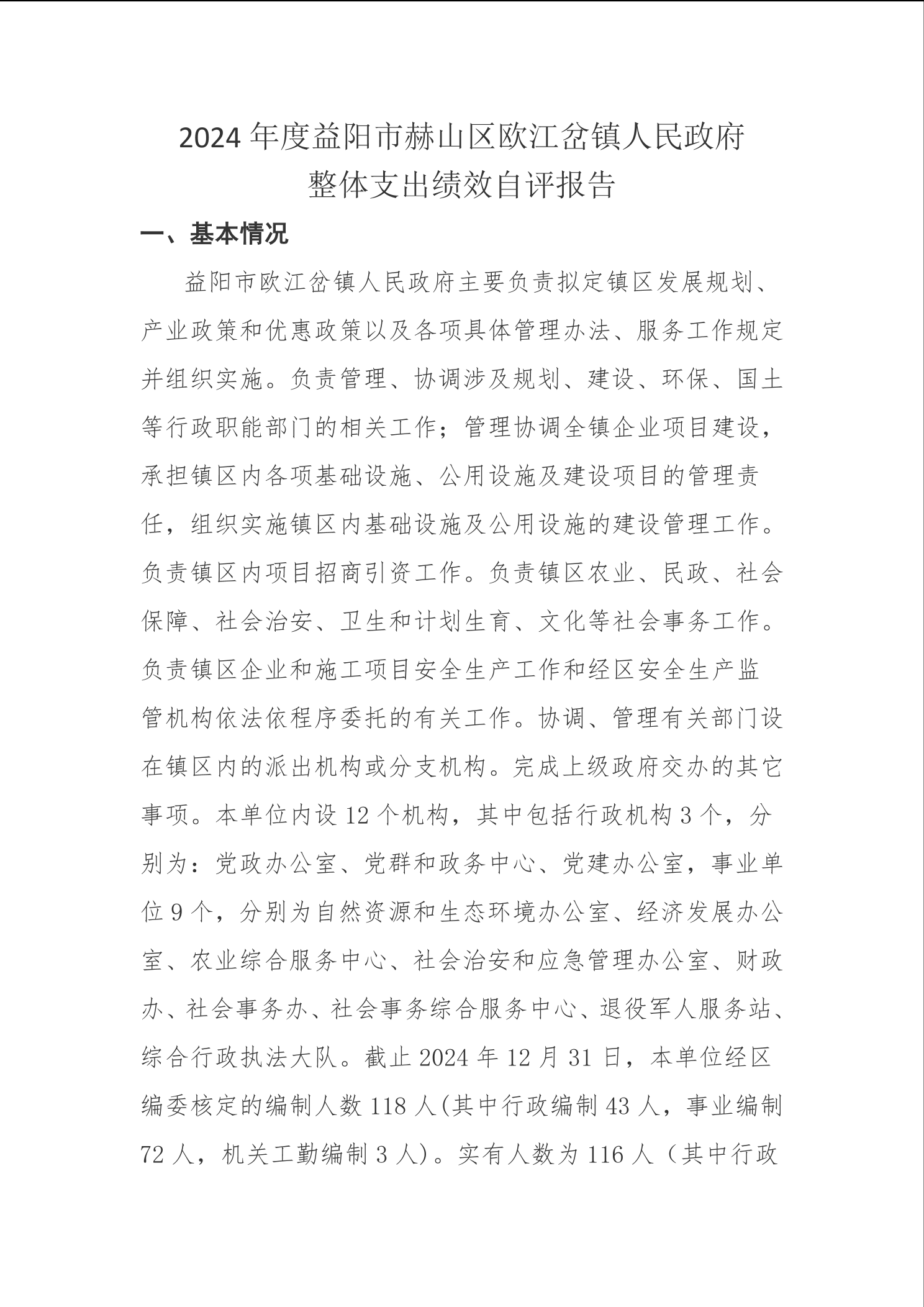 2024年度益阳市赫山区欧江岔镇人民政府整体支出绩效自评报告