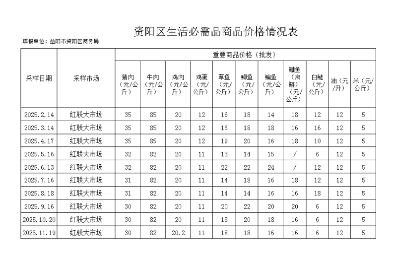 资阳区2025年11月19日生活必需品价格情况表