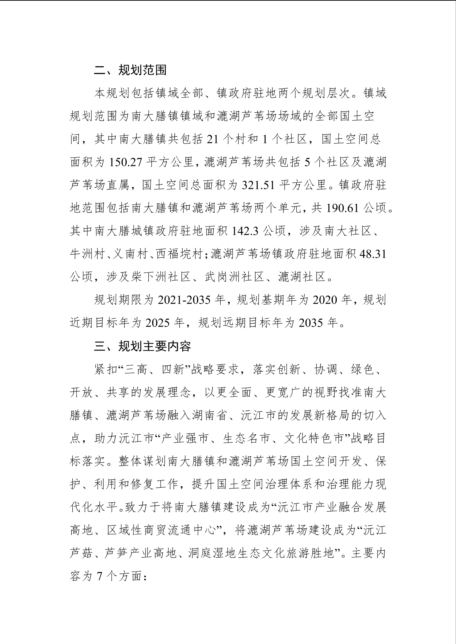 沅江市南大膳镇-漉湖芦苇场国土空间规划(2021-2035年)公示