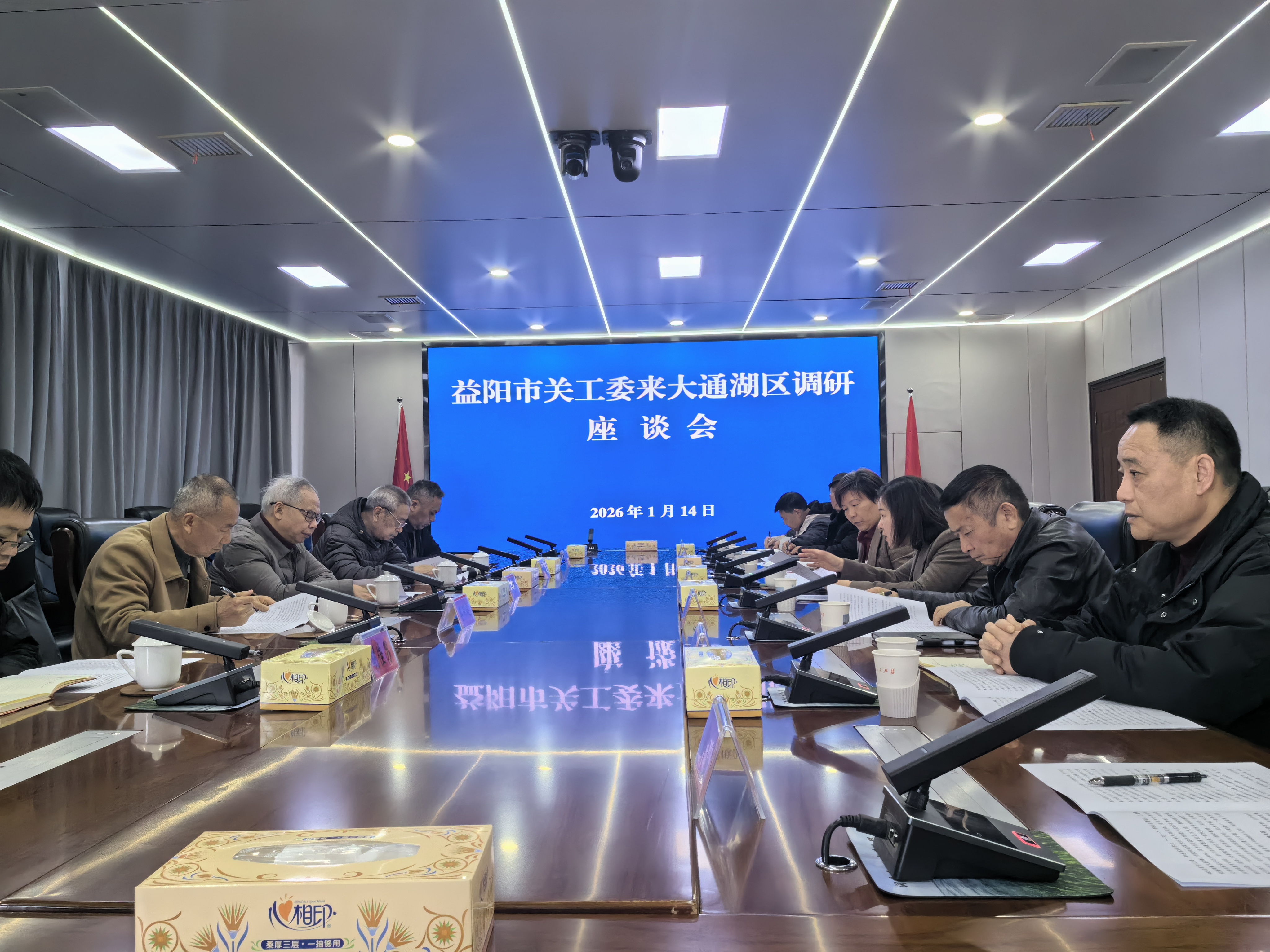 1月14日上午,益阳市关工委主任彭建忠带队赴大通湖区调研关心下一代工作。区委委员、区委组织部部长、区关工委主任王香琴及相关负责人参加。