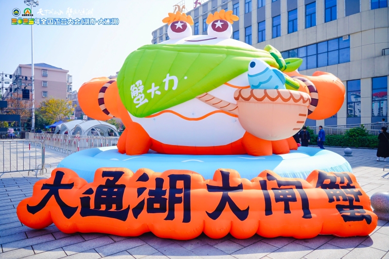 2025年全国露营大会主会场的大型“蟹大力”玩偶