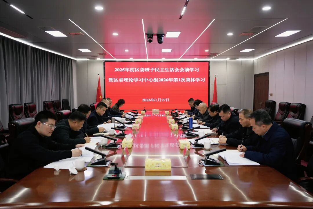 1月27日,2025年度区委班子民主生活会会前学习暨区委理论学习中心组2026年第1次集体学习举行。深入学习贯彻习近平新时代中国特色社会主义思想,全面贯彻党的二十届四中全会精神,巩固拓展深入贯彻中央八项规定精神学习教育成果,锲而不舍落实中央八项规定精神,不断推进作风建设常态化长效化,切实把思想和行动统一到党中央决策部署上来,打牢开好民主生活会的思想基础。区委书记罗立峰主持并作总结讲话。