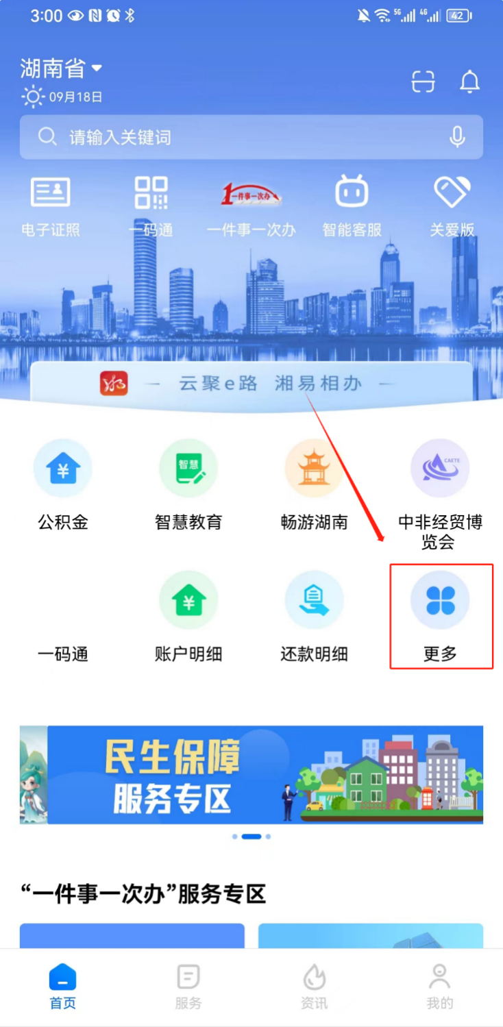 第一步:进入“湘易办”APP或“湘易办”微信小程序、“湘易办”支付宝小程序。