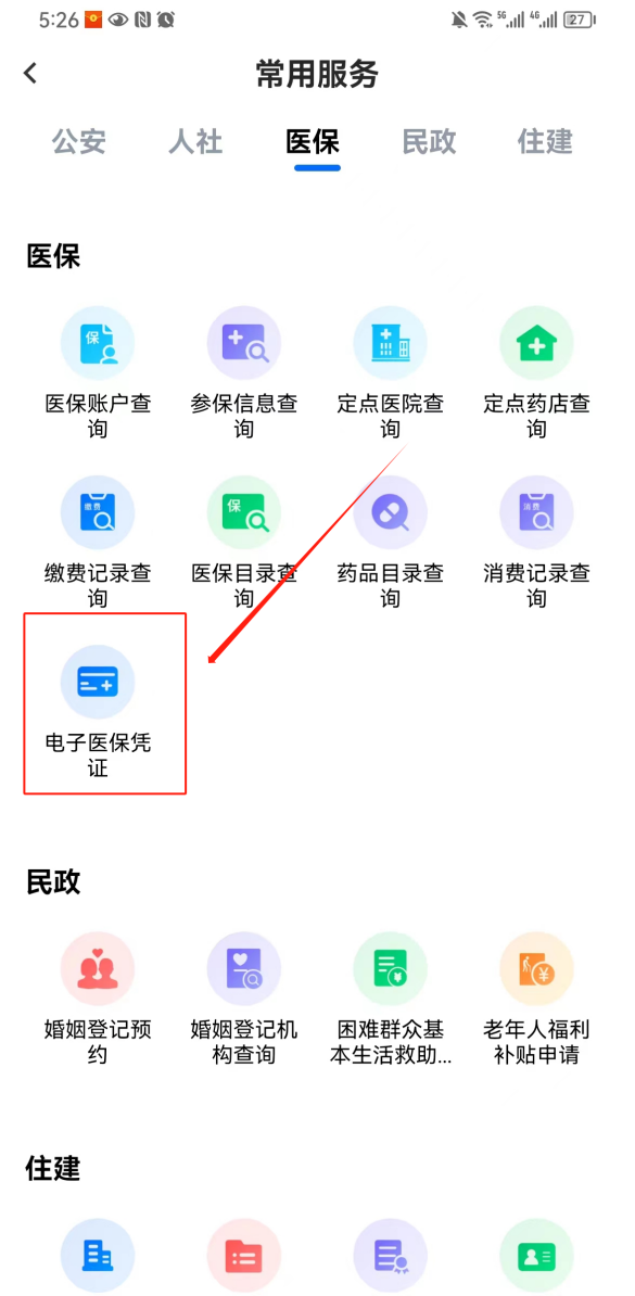 第二步:在首页功能区点击“更多”,在常用服务里选择“医保”分类选项,就可以找到“电子医保凭证”功能入口了!